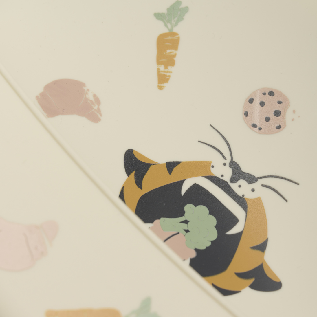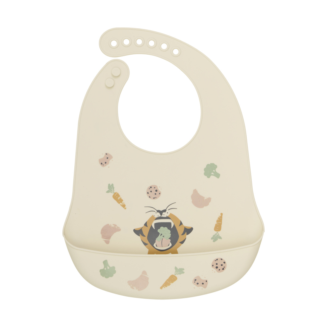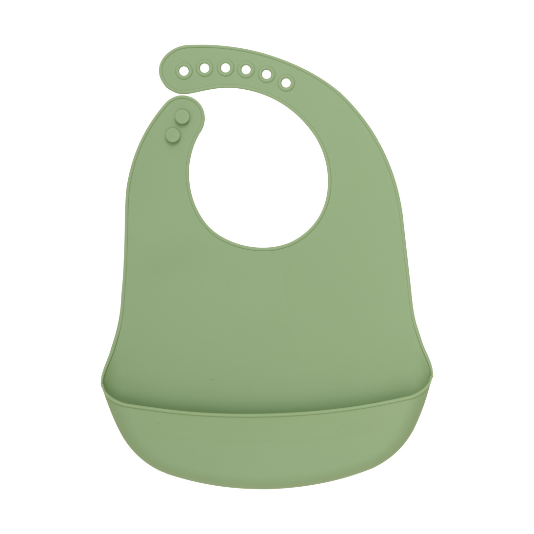 2-pack silicon bib from CeLaVi. The bib is one-size, with a cute print on the front and closes at the neck with a snap with multiple settings. The bib has a deep pocket that catches all the wasted food.