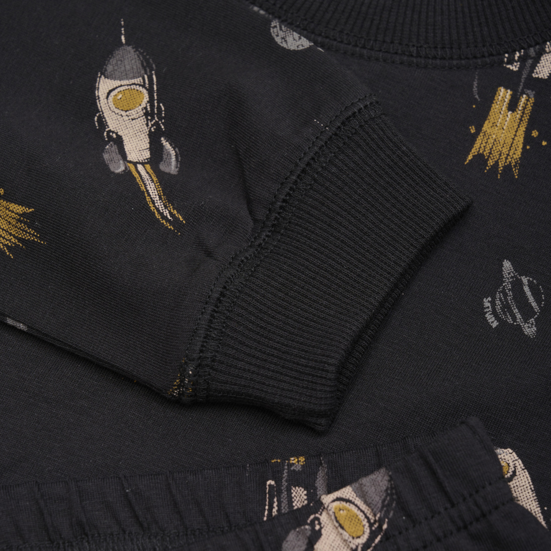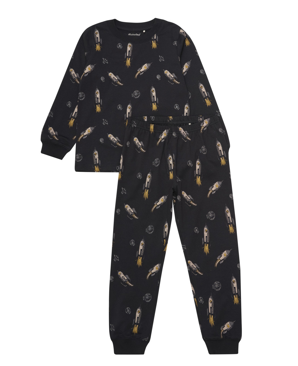 Pyjama-setti, jossa on pitkähihainen paita ja yhteensopivat housut, joissa on tyylikäs printti. Valmistettu pehmeästä ja mukavasta kankaasta, täydellinen hyviin yöuniin. GOTS-sertifioitu - luomu CERES-0366