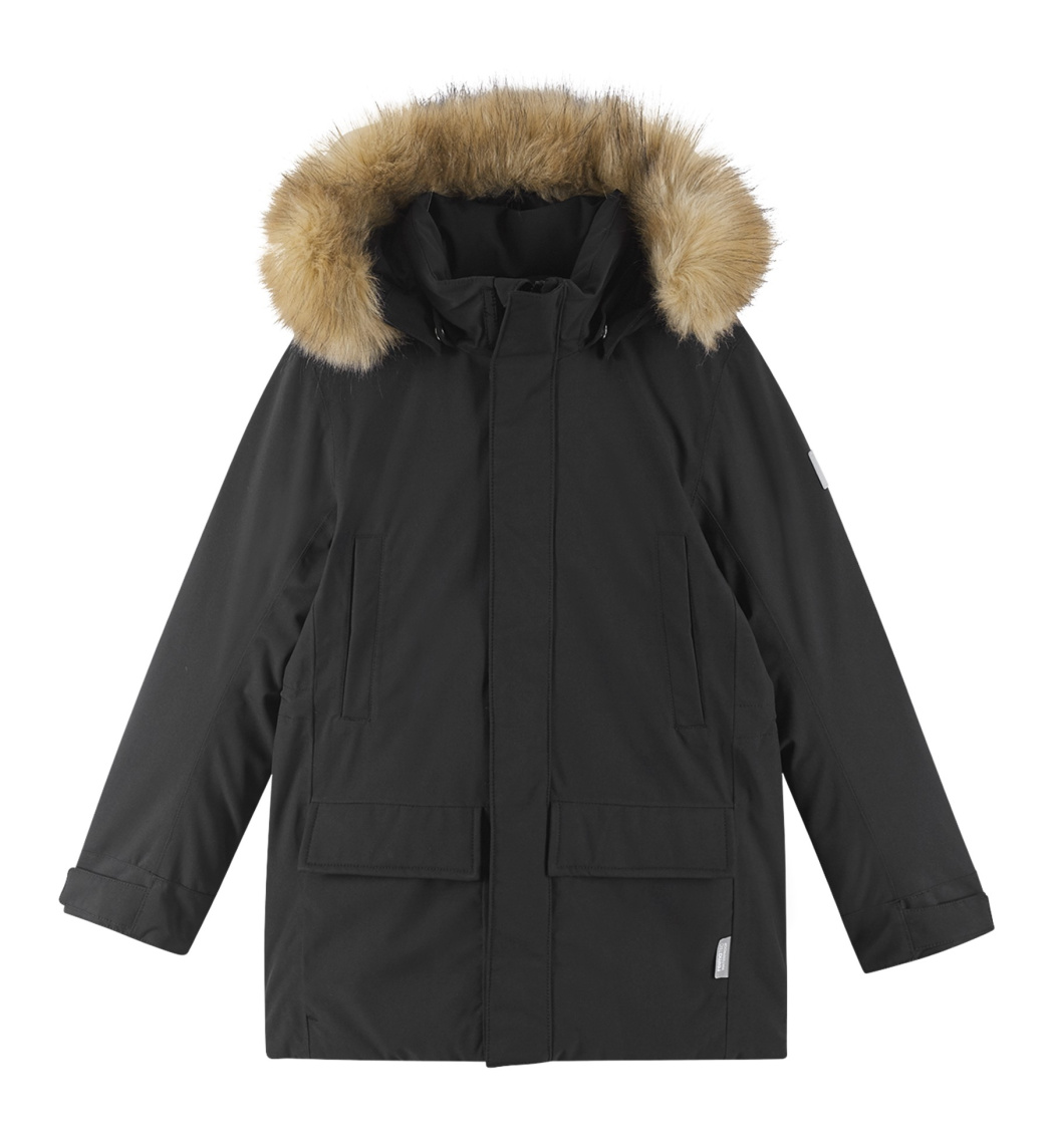 Reimatec dunjacka Serkkula är designad för barns vinteräventyr. Jackan är gjord av vattentätt och andningsbart material som stöter bort vatten och smuts. Alla sömmar är också tejpade vattentäta, så ditt barn håller sig torrt i alla väder. Jackans dunisolering är extremt varm och de justerbara ärmsluten håller vinden borta. Den skyddande huvan med avtagbar fuskpälskant är också säker: huvan lossnar om den fastnar i något. Jackan har även en ficka med dragkedja på sidan och vilofickor och fickor med lock framtill som kan stängas med tryckknappar. En invändigt justerbar midja säkerställer en bra passform.