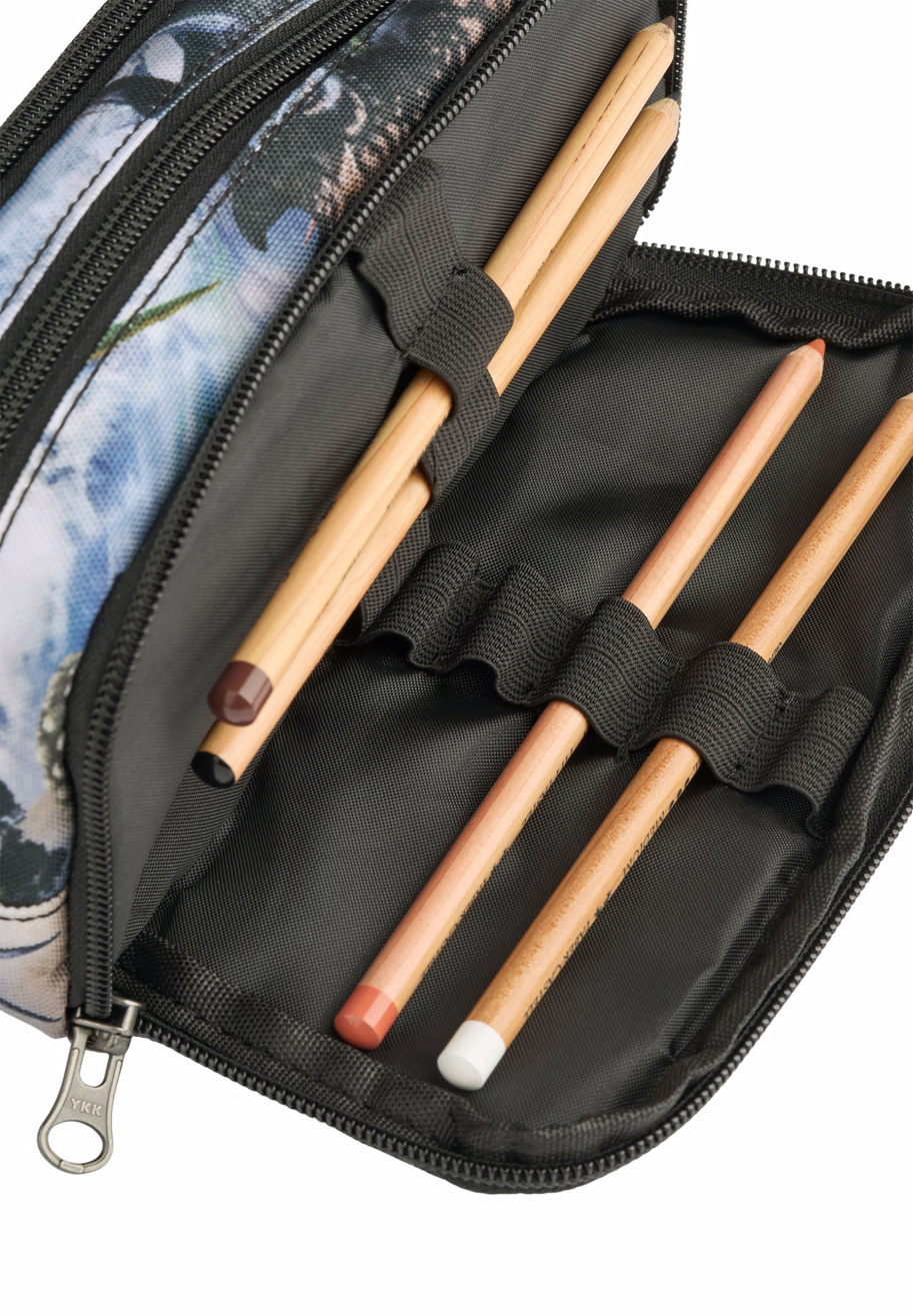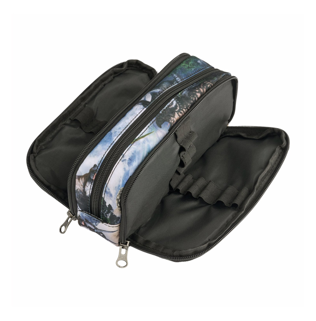 Kestävä Molo penaali kolmella vetoketjulokerolla. Ei sisällä kyniä tai muita tarvikkeita. Hauska dino-kuviointi.