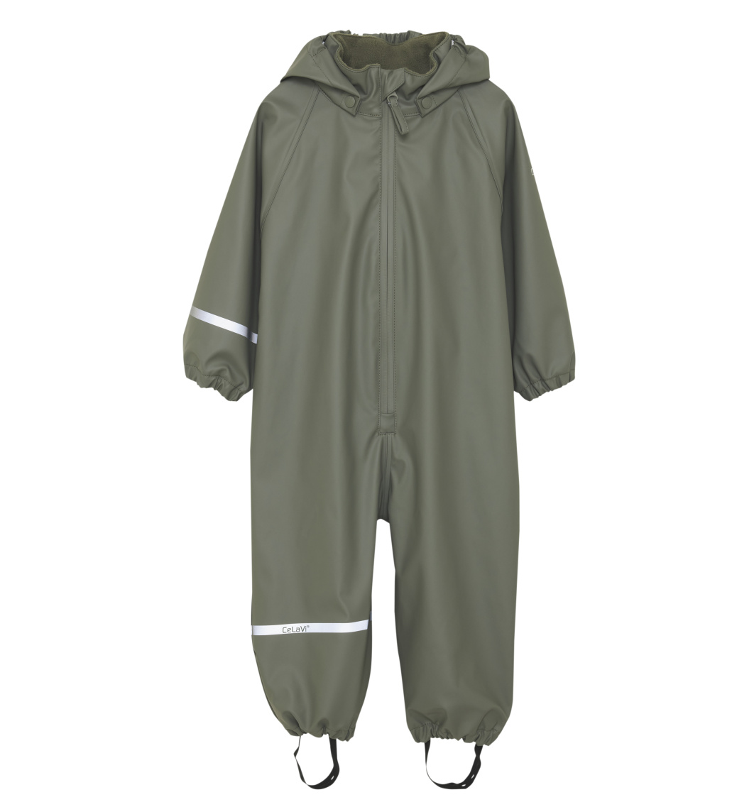 CeLaVi-sadepuku PU-muovista. Toisessa hihassa ja toisessa lahkeessa on kapeat heijastinraidat. Toisen hihan yläosassa ja hupun takaosassa on heijastava painettu logo. CeLaVi-sadepuvussa on irrotettava huppu, joka kiinnitetään painonapeilla kauluksessa. Se suljetaan edestä vedenpitävällä vetoketjulla. Hupun suuaukon, hihansuiden ja vyötärön kuminauhat parantavat istuvuutta. Housuissa on käytännölliset ja säädettävät kuminauhat, jotka voidaan vetää jalkineiden alle.