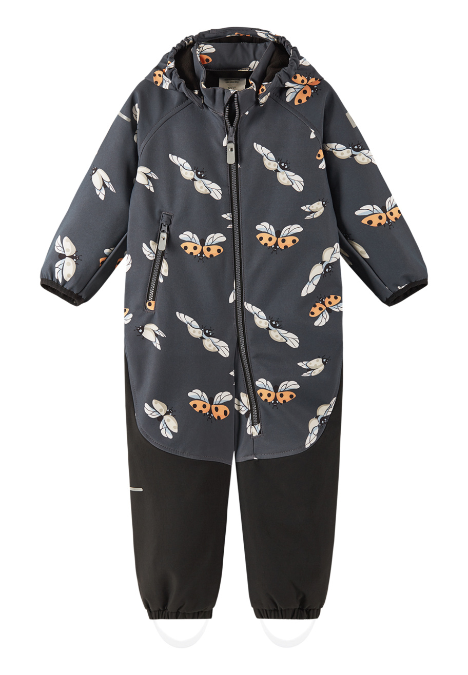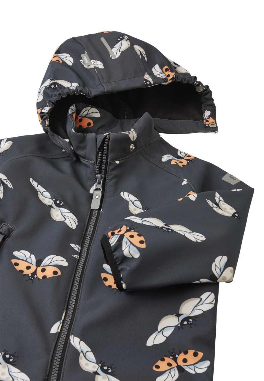 Pienten lasten tuulenpitävä Mjosa softshell-haalari on hengittävä ja hylkii tehokkaasti vettä. Reiman softshell on tekninen kolmikerrosmateriaali, jonka sisäpuoli on fleeceä. Irrotettava huppu suojaa viimalta ja on turvallinen leikkiessä. Täyspitkä vetoketju helpottaa pukemista, ja leukapehmuste estää vetoketjun lukkoa hankaamasta. Kestävä vahvike alaosassa.